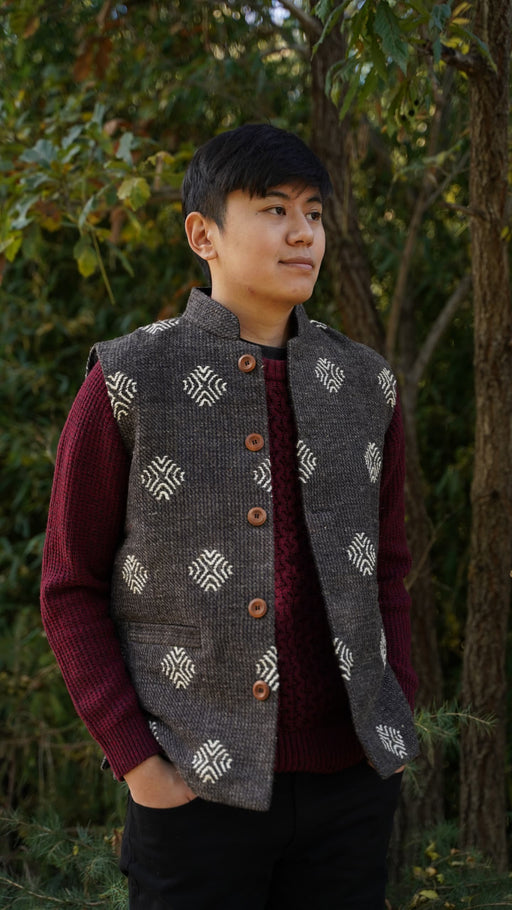 View full detailsEmbrace the timeless elegance of Bhutanese craftsmanship with this handwoven sheep wool sleeveless jacket. Crafted from premium natural wool, this ...